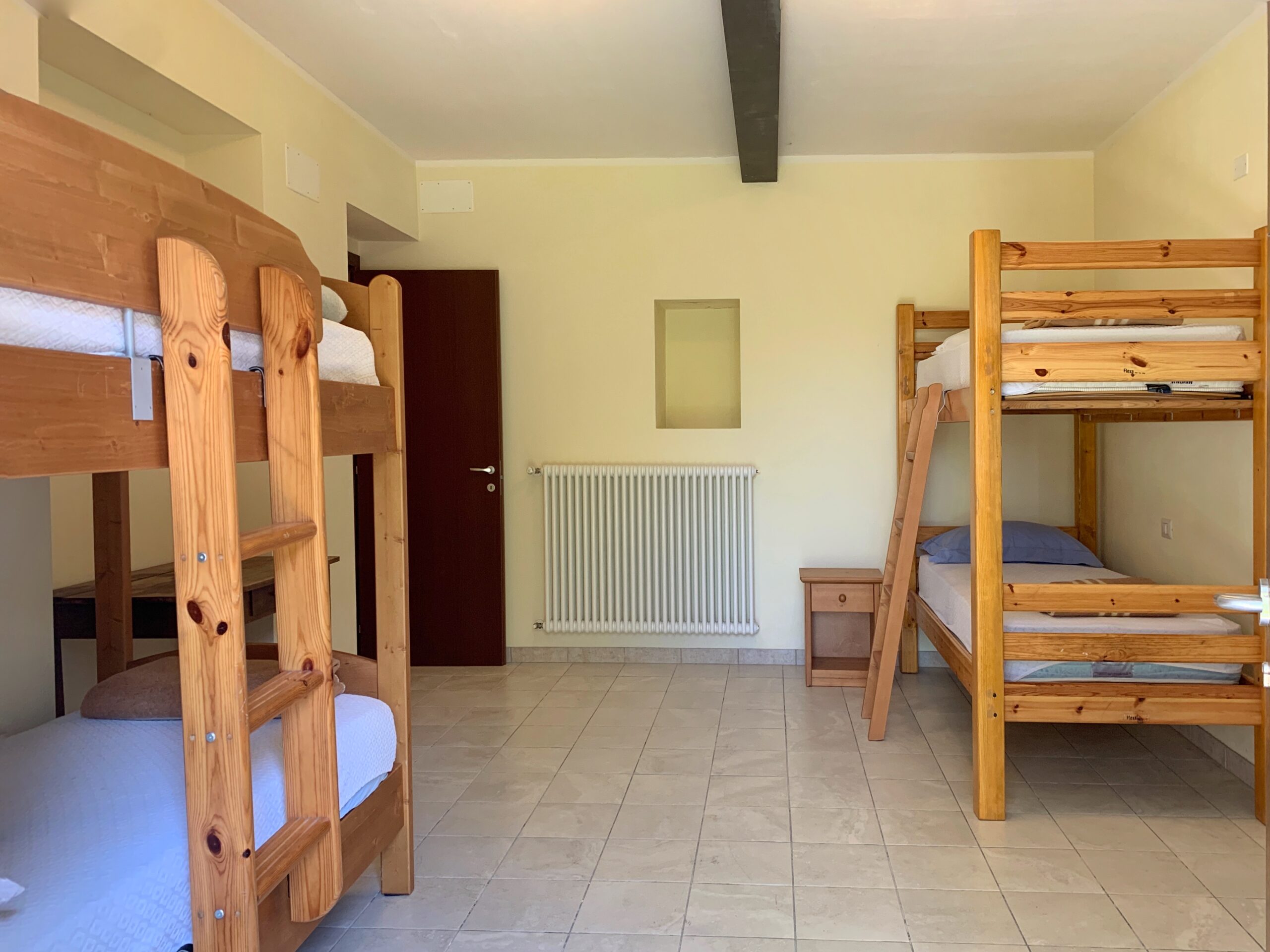 L’appartamento Rododendro è posizionato al piano terra ed è provvisto di un ingresso indipendente. Dispone di 3 camere da letto (1 doppia, 1 tripla e 1 quadrupla) per un totale di 9 posti letto. Tutte le stanze hanno un affaccio sul giardino.